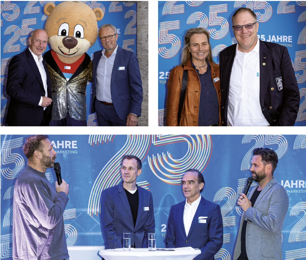 Zu den Gratulanten gehörten u. a. Berlins Regierender Bürgermeister Kai Wegner, die LOTTO-Vorstände Dr. Marion Bless und Hansjörg Höltkemeier, Spielbank-Berlin-Chef Gerhard Wilhelm, BR Volleys-Manager und Berlins Olympiabeauftragter Kaweh Niroomand, die Olympiasieger Robert Harting (Diskus) und Ronny Rauhe (Kanu). „Berlin ist die Sportmetropole in Deutschland – und der Sport braucht eine starke Stimme. TOP Sportmarketing ist seit 25 Jahren in Zusammenarbeit mit dem Landessportbund Berlin und dem Olympiastützpunkt die professionelle und innovative Vertretung des Sports. Herzlichen Glückwunsch zu 25 Jahren Spitzenleistung!“, sagte der Regierende Bürgermeister Kai Wegner im Gespräch mit Moderator Matthias Killing.