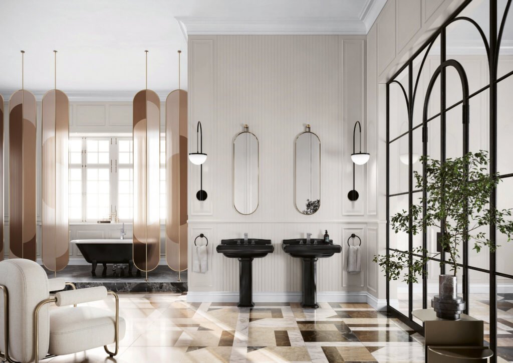 Es gibt sie: Inspirierende Epochen, die ihren charakteristischen Zeitgeist bis in unseren heutigen Alltag transportieren. So auch die Bad-Kollektion „Hommage“ von Villeroy & Boch, die in die Metropolen der Welt Anfang des 20. Jahrhunderts entführt. Hier, wo sich das Image des Badezimmers erstmals weg von der reinen Nasszelle und hin zum eleganten Lifestyle-Ort transformierte. Nun nimmt das Traditionsunternehmen sein eigenes 275. Firmenjubiläum zum Anlass, um seinen Bad-Designklassiker neu zu interpretieren. „Hommage an Hommage“ verkörpert den luxuriösen Stil der frühen 1900er Jahre, kleidet sich optional aber in der modernen, ausdrucksstarken Keramikfarbe Pure Black!