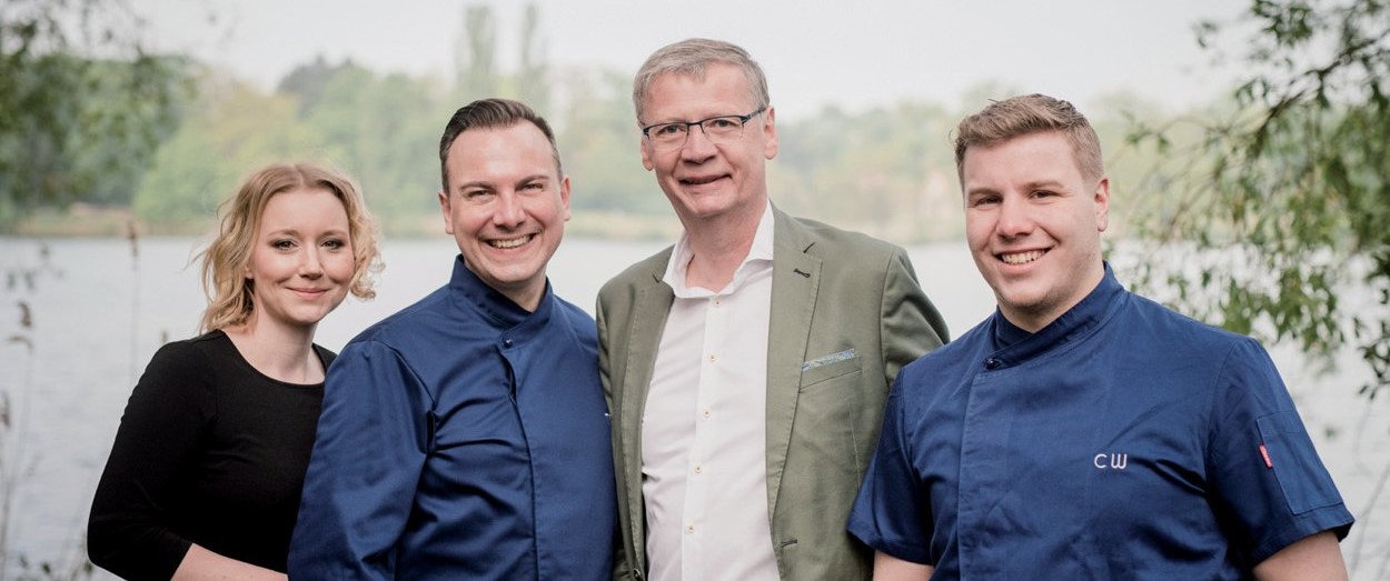 Gastlichkeit mit Genuss und Stil: Gastgeberin Patricia Liebscher, Sternekoch Tim Raue, Eigentümer Günter Jauch und Küchenchef Christopher Wecker - Fotos: Nils Hasenau